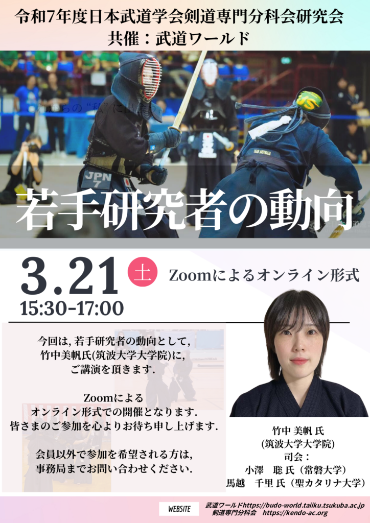 令和7年度日本武道学会剣道専門分科会「研究会」のご案内